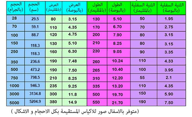 تختلف طبقا لكثافتها و لذلك نرجو التأكد من المنتجات عن طريق ملء الاكياس و قياس الحجم.